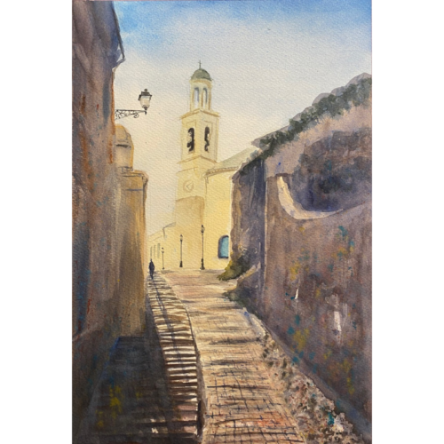 Accanto alla rappresentazione del reale, sperimenta anche composizioni astratte, utilizzando l’acquerello come strumento di esplorazione di forme e cromie libere, lasciando spazio all’espressività e all’intuizione.