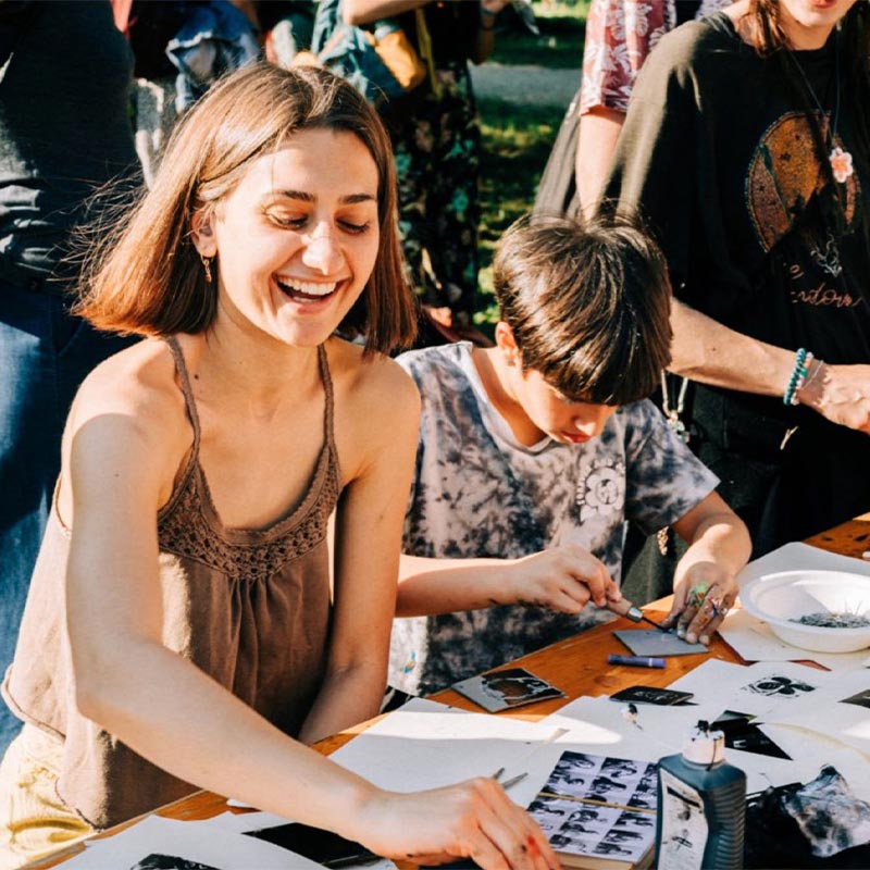 Mi chiamo Bianca Kaplan e sono un’artista nata e cresciuta a Londra, con origini italiane e turche. Dopo aver conseguito una laurea in Illustrazione in Cornovaglia, nel Regno Unito, mi sono trasferita a Bologna. Mi dedico a pratiche artistiche socialmente impegnate, conducendo workshop di stampa sperimentale con materiali di recupero rivolti a persone in situazioni di vulnerabilità, tra cui migranti, persone con difficoltà fisiche e mentali, persone senza dimora, adolescenti non accompagnati, anziani e detenuti. Ho inoltre curato mostre e guidato progetti artistici in collaborazione con diverse associazioni, cooperative, beni confiscati, case di quartiere, centri culturali e festival, sviluppando laboratori di stampa partecipativi con spesso una pubblicazione finale.