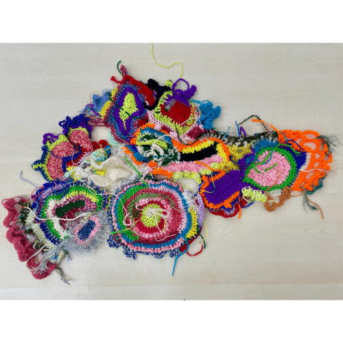 Attraverso incontri regolari, come i club dell’uncinetto, il collettivo crea una comunità basata su condivisione e manualità, trasformando un gesto semplice in un atto di cura collettiva. Le pratiche della maglia e dell’uncinetto caricano di significato e di emotività oggetti attraverso la manifattura lenta e collaborativa.