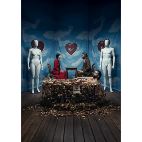 Paolo Cremona è un artista siciliano che usa la fotografia come un palcoscenico mentale. Professionista formato all’Accademia di Belle Arti di Catania, unisce una base tecnica solida alla ricerca sui nuovi media digitali e sull’intelligenza artificiale, che usa come strumenti di costruzione, non di trucco. La sua pratica nasce dentro la tradizione dei tableaux vivants: immagini costruite, controllate, dove nulla è spontaneo e nulla è superfluo. Ogni elemento è un attore. Ogni oggetto è un segno. Ogni postura racconta un conflitto. Il suo fotorealismo non vuole imitare la realtà, ma rivelarne le crepe. I suoi set diventano piccole liturgie visive: miti reinventati, drammi silenziosi, emozioni che non trovano lingua ma trovano forma.