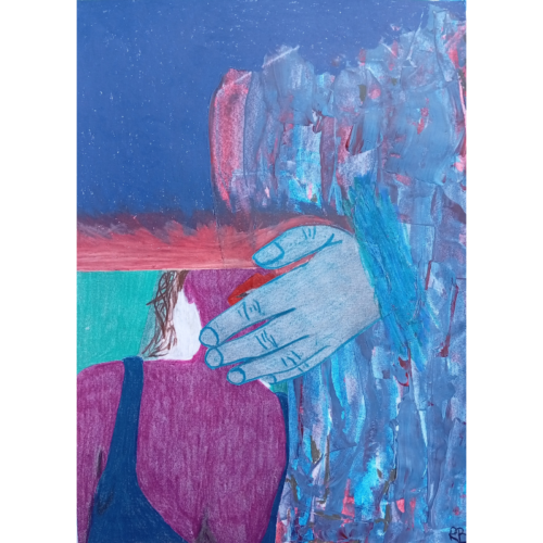 Sono un’autodidatta. Mi sono avvicinata al disegno e alla pittura per una necessità di espressione che forse non ha ancora trovato risposta. Mi muovo verso il foglio e tra i colori ogni volta con desideri e stati d’animo diversi.