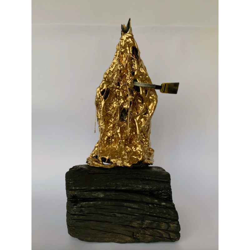 Tecnica: Burned wood, copper, aluminum, plastic, acrilic spray, gold leaf