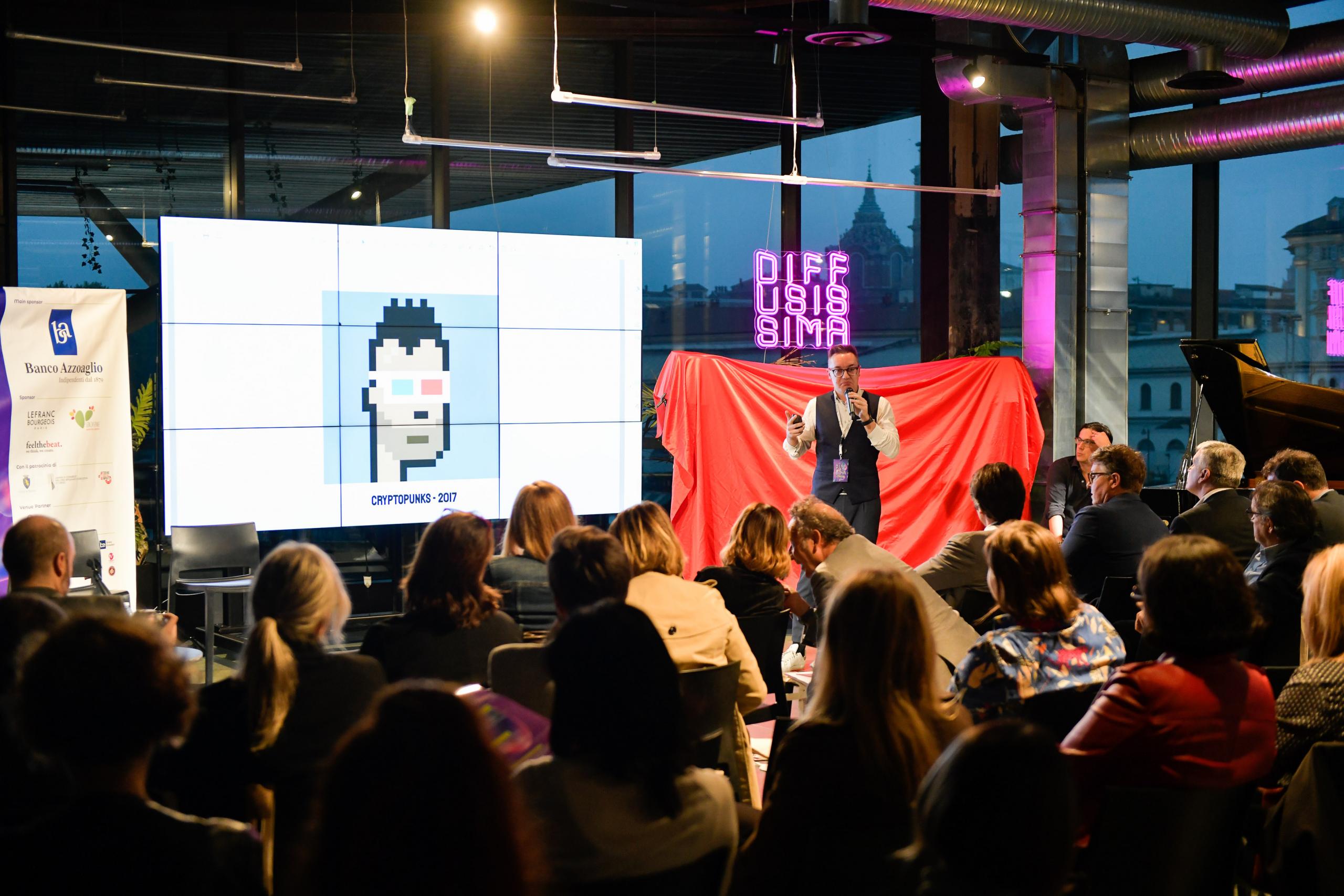 Sono stati 60 gli Host che hanno ospitato le oltre 2000 opere degli artisti di Diffusissima. Tutto è cominciato il 24 ottobre con il forum “Lo stato dell’arte”, la serata di inaugurazione al Mercato Centrale di Torino, che ha visto salire sul palco importanti speakers come Andrea Concas, Alvin, che ha presentato il suo nuovo progetto sugli Artoys, Giuliano Ambrosio che ha parlato di NFT e l’avvocato Morabito. Hanno avuto spazio anche SenzaSpine, startup calabrese produttrice di succhi di frutta al fico d’india, gli esponenti della nota casa d’aste Catawiki, con cui sono state lanciate due aste, e quelli di Mail Boxes Etc