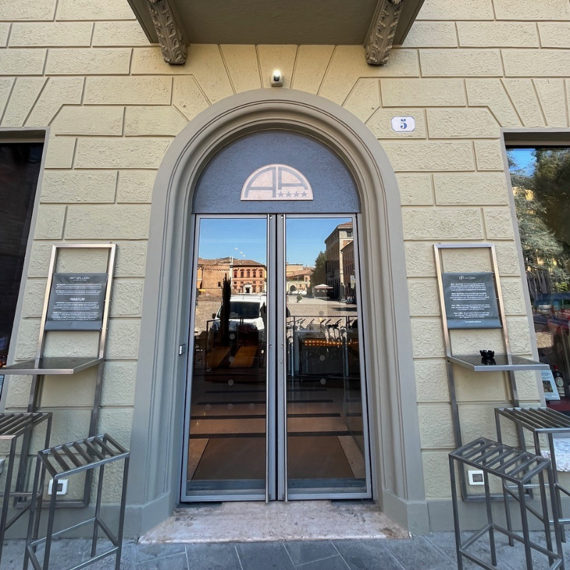 Nato come hotel di accoglienza “di sostanza”, negli anni è diventato un Home Design Boutique Hotel: ambienti moderni e caldi, design italiano, opere d’arte e un’idea semplice ma precisa qui ci sono persone vere, non totem di self check-in.