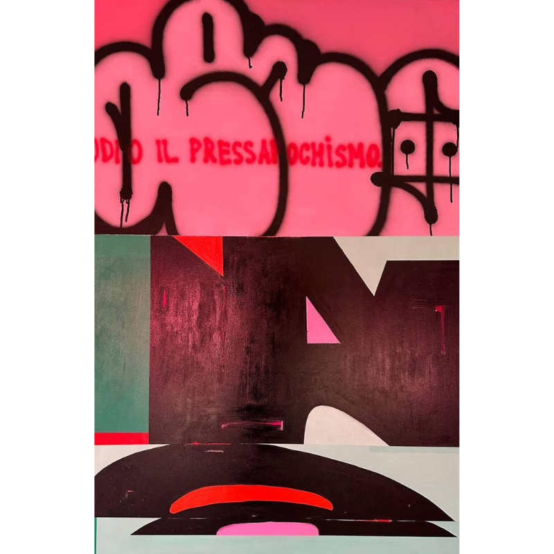 Descrizione: UNO//MATERIA è un progetto artistico di Rosa Chemical ed Edoardo Bansone che esplora il dualismo tra principio spirituale e realtà materiale. Sei opere post-graffitiste mettono in tensione l’unità invisibile dell’“Uno” e la frammentazione del mondo fisico. La pittura diventa rito, il gesto diventa segno di un conflitto: elevazione e caduta, ordine e caos, spirito e corpo. Il titolo stesso è frattura e ponte: UNO, come aspirazione all’assoluto; MATERIA, come carne viva dell’esperienza. In questo spazio liminale, l’arte si fa luogo di attraversamento, incarnando il tentativo umano di riconciliarsi con la propria natura divisa.