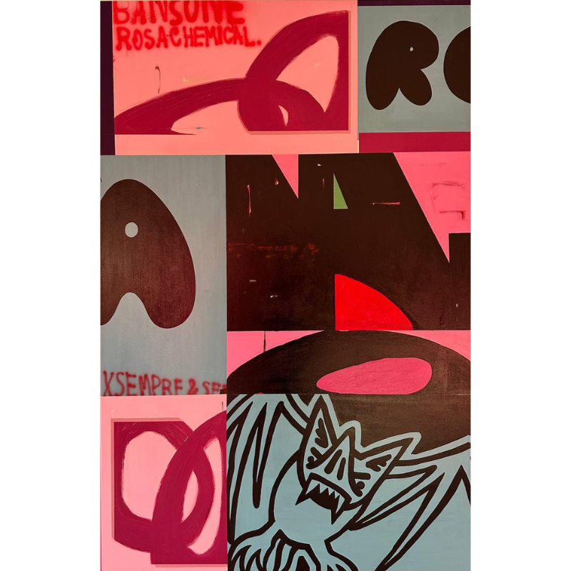Descrizione: UNO//MATERIA è un progetto artistico di Rosa Chemical ed Edoardo Bansone che esplora il dualismo tra principio spirituale e realtà materiale. Sei opere post-graffitiste mettono in tensione l’unità invisibile dell’“Uno” e la frammentazione del mondo fisico. La pittura diventa rito, il gesto diventa segno di un conflitto: elevazione e caduta, ordine e caos, spirito e corpo. Il titolo stesso è frattura e ponte: UNO, come aspirazione all’assoluto; MATERIA, come carne viva dell’esperienza. In questo spazio liminale, l’arte si fa luogo di attraversamento, incarnando il tentativo umano di riconciliarsi con la propria natura divisa.
