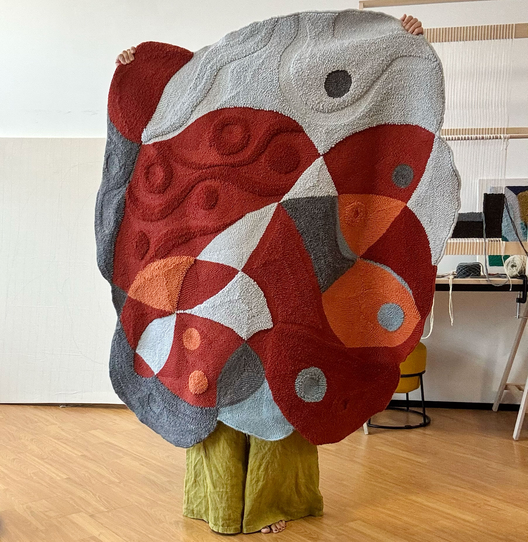 Descrizione: Arazzo tessile realizzato a mano con la tecnica del punch needle.