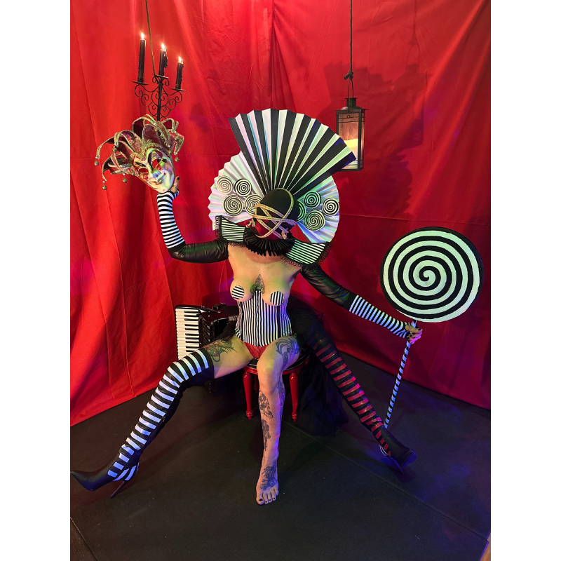 Descrizione: Fotografia surrealista che mette in scena il corpo come dispositivo simbolico, tra maschera, legami e costruzione dell’identità.