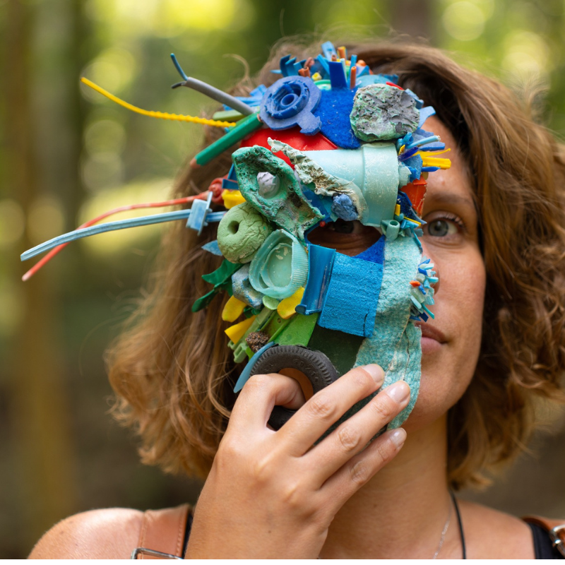Creature dal mare- il volto fa parte del progetto “creature dal mare”, un’opera collettiva, fatta da molteplici attori: noi, i nostri scarti, il mare che ce li restituisce cambiati, di nuovo noi trasformati in ibridi di plastica e carne. Assemblage realizzato con scarti raccolti in spiaggia e lavorati su base di cartapesta. La maschera è realizzata per essere indossata e l’opera può essere esposta insieme ad uno degli scatti fotografici realizzati insieme agli utenti /spettatori. Per una fruizione ottimale dell’opera andrebbe rispettato lo stesso concetto . Lo spettatore fruisce l’opera indossandola e scattando una foto, perchè egli stesso, nell’attimo in cui indossa la maschera, diventa una creatura “dal mare”.
