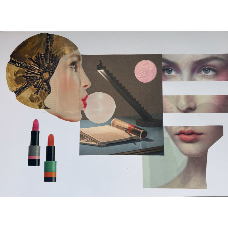 Descrizione: Questo collage si sofferma sulla dualità presente in ognuno di noi, che mostriamo un aspetto esteriore ed una parte nascosta al nostro interno.