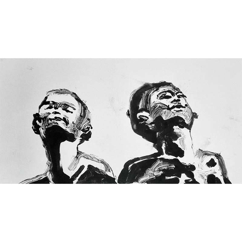 Descrizione: Germanor rappresenta due personaggi che sono anche paesaggi: due montagne di inchiostro nero che ritagliano il foglio bianco, che è il cielo. Non sappiamo chi siano, ma possiamo immaginarli in un attimo fugace (rappresentato dalla tecnica del monotipo) mossi da questo sentimento di unione, di fratellanza.