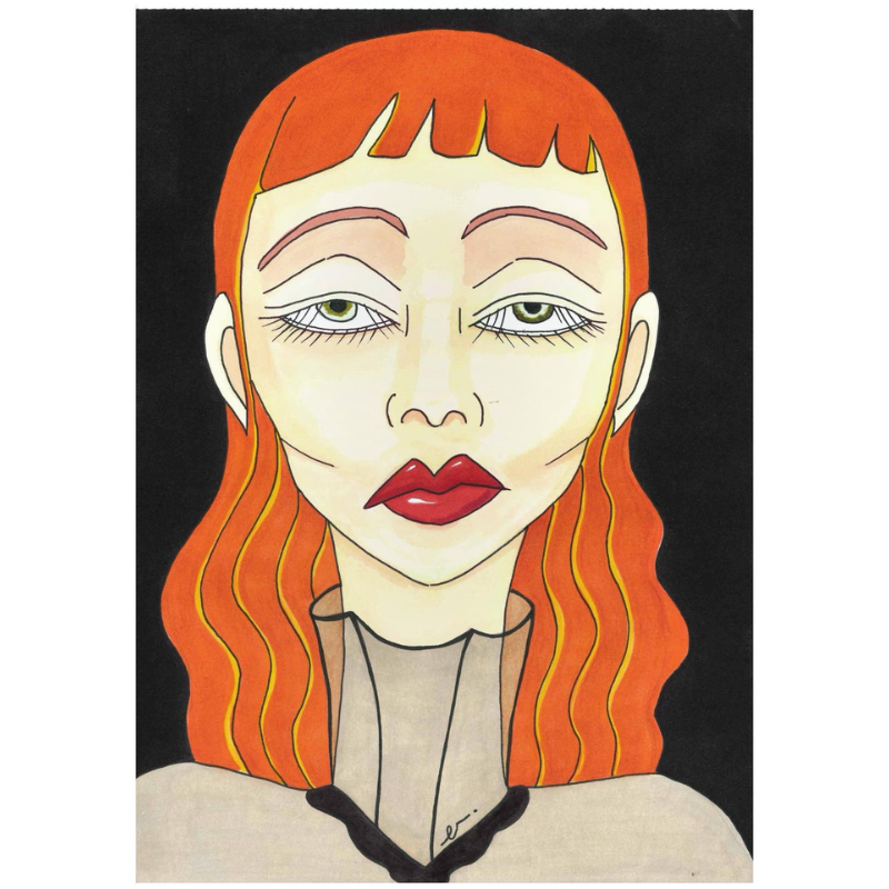 Descrizione: “Gilda” è un’opera che rappresenta una figura femminile con capelli arancioni vibranti, che contrastano con la pelle chiara e luminosa. Il dettaglio del vestito nero trasparente aggiunge un tocco di eleganza e sensualità all’immagine. Tuttavia, lo sguardo della donna è assente e indifferente, creando un senso di mistero e introspezione. La volontà è quella di catturare un momento di riflessione e distacco, invitando lo spettatore a interrogarsi sull’emozione e il pensiero della protagonista.