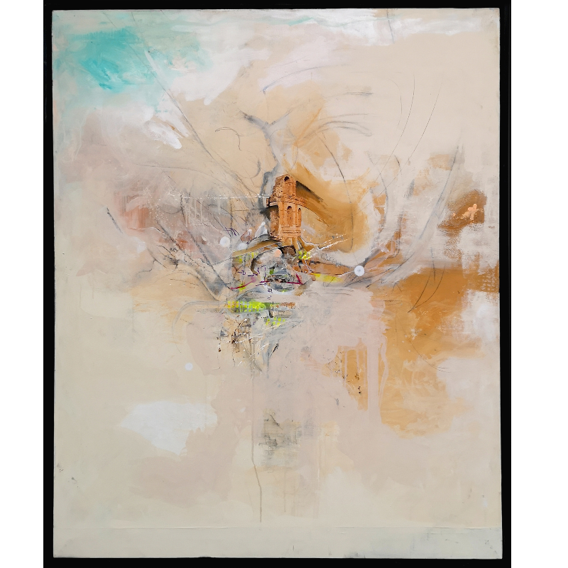 Tecnica: Mixedmedia su canvas. Oil, drawing collages, sprays and pigments on canvas