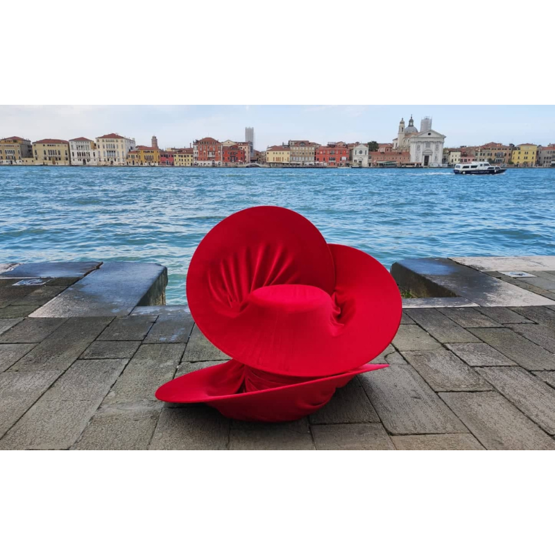 Descrizione: L’opera in tessuto ed acciaio è nata per dare nuova vita ad accessori obsoleti o privi di personalità.