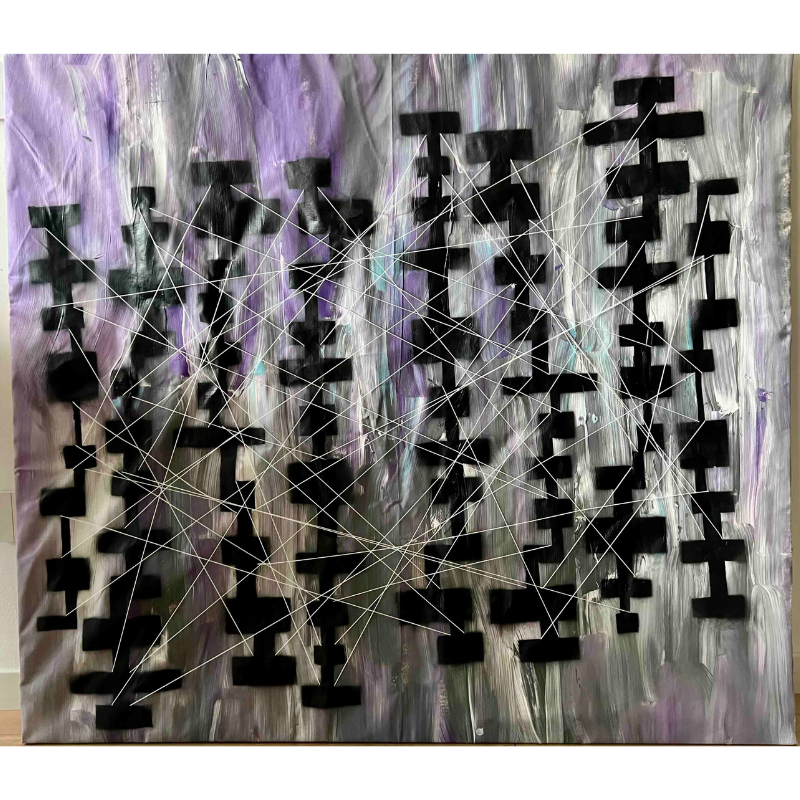 Tecnica: Tecnica mista: vernice spray, acrilico e cuciture su tela