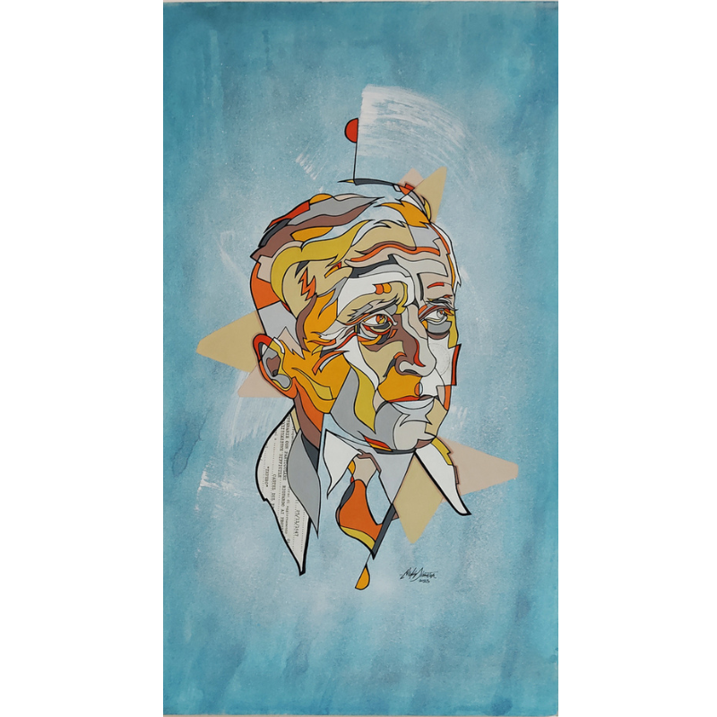 Descrizione: Due palazzi del mio quartiere, le loro finestre, le luci, e le vite al loro interno. Tutto si scompone e ricompone in un insieme di linee ed elementi grafici, dando vita ad una nuova visione della realtà di quei palazzi. Fluttuano in un cielo ocra, e si stagliano contro nuvole elettriche. L’opera è tutta realizzata a mano con pennello.