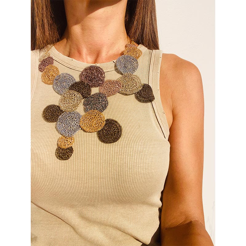 Descrizione: Un gioiello che emula la crescita dei licheni sui muri della campagna salentina, trasformando in forma indossabile la lentezza e la resilienza della natura. Realizzato con materiali che evocano il paesaggio – metalli ossidati, resine traslucide o elementi organici inglobati – assume un aspetto organico e mutevole, come se fosse un frammento di muro antico portato sul corpo. Non ricerca la preziosità dei materiali, ma il valore del tempo, della memoria e dei gesti che lo generano. Così diventa paesaggio in miniatura: un atto di cura e di resistenza, dove tradizione e sperimentazione si incontrano per dare vita a un linguaggio poetico e radicale.