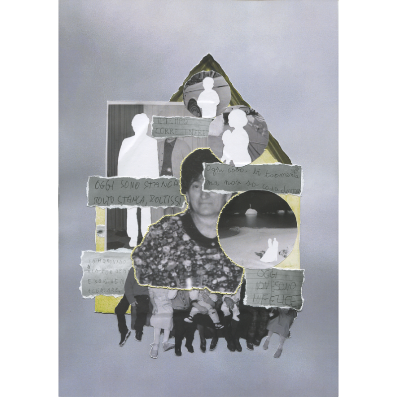 Descrizione: “Melt away” is a world in the midst of disintegration. At its center, a figure is surrounded by her memories—fragmented, faded, and no longer connected. The outline of her body is the only certainty she has left. The work is a collage of photographs and personal memories, brought together to create a portrait of how our memory slowly drifts and dissolves over time.
