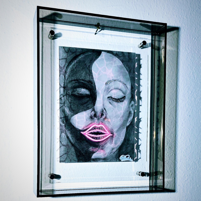 Descrizione: L’opera si articola in una sovrapposizione di strati fragili, metafora della delicatezza dei momenti che definiscono un’esistenza. Al centro emerge la figura di una donna in bianco e nero, il cui volto è attraversato da contrasti netti: il nero rappresenta il tempo sospeso di una diagnosi, la vulnerabilità e la rassegnazione che essa può generare; il bianco, in contrapposizione, incarna la rinascita, la trasformazione e la volontà di combattere per tornare più forti di prima. È il colore della speranza che si riaffaccia, ostinata e luminosa.