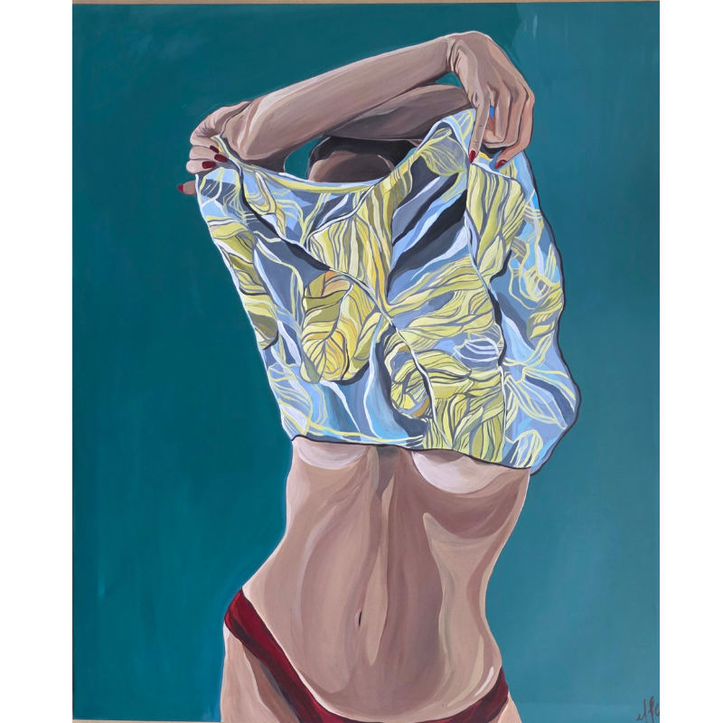Descrizione: C’è un momento fatto di pochi attimi in cui non c’è distinzione evidente tra il vestirsi e il denudarsi, è un’immagine di grande intimità che sancisce il potenziale passaggio dal risveglio all’assunzione di un ruolo, alla ripresa della vita allo stato cosciente o, viceversa, l’abbandono delle vesti indossate in favore di una immersione in una fase di vulnerabilità e autenticità.