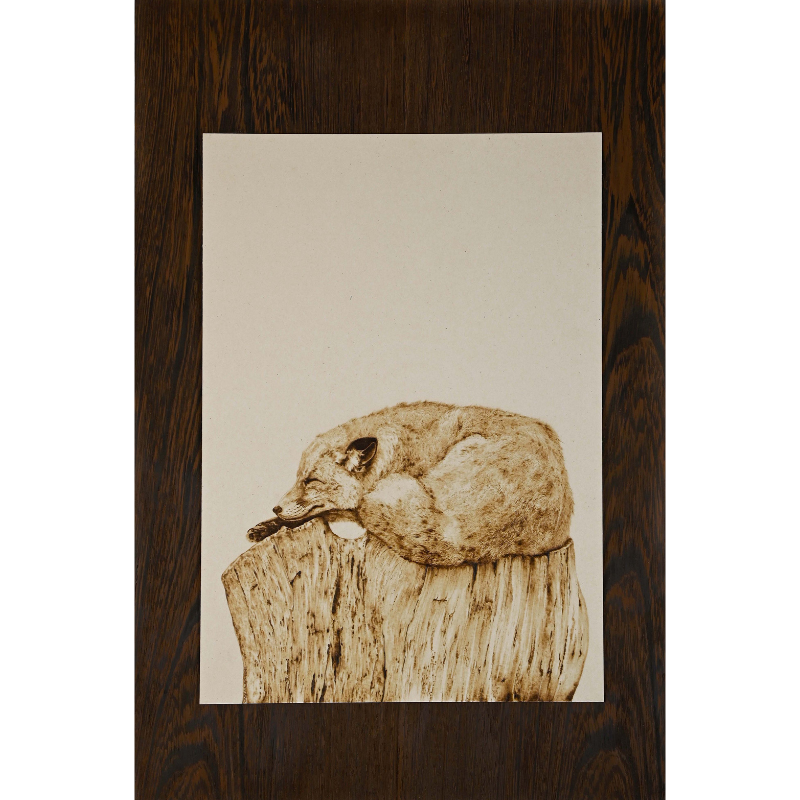 Tecnica: Pirografia su carta in pasta di legno cornice piallaccio di wengè