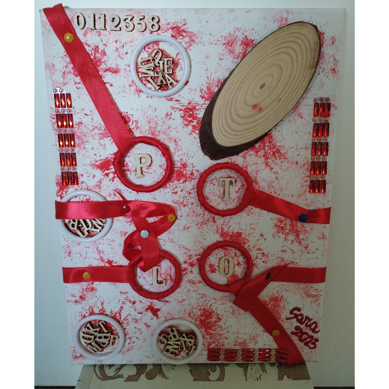 Tecnica: Mixed media Acrilici, legno e nastro su tela