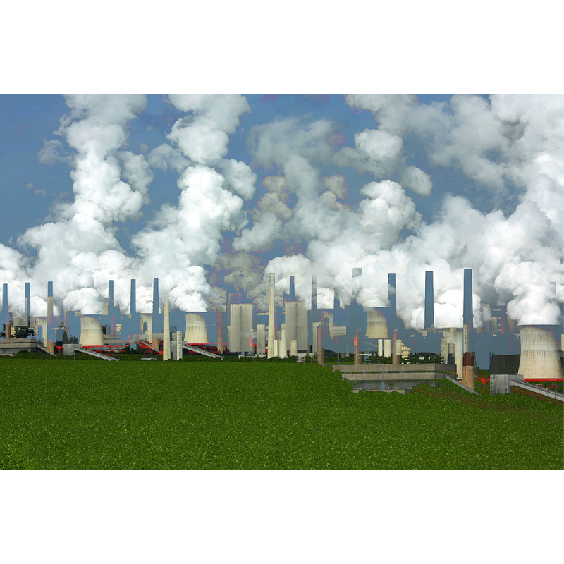 The photograph stands between documentation and abstraction, preserving the presence of the power plant while allowing it to shift into a more open, contemplative image.
