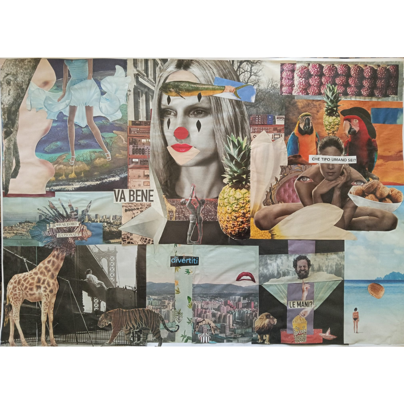 Tecnica: Assemblaggio di ritagli di riviste su un supporto; con la sovrapposizione è stata formulata una nuova immagine.