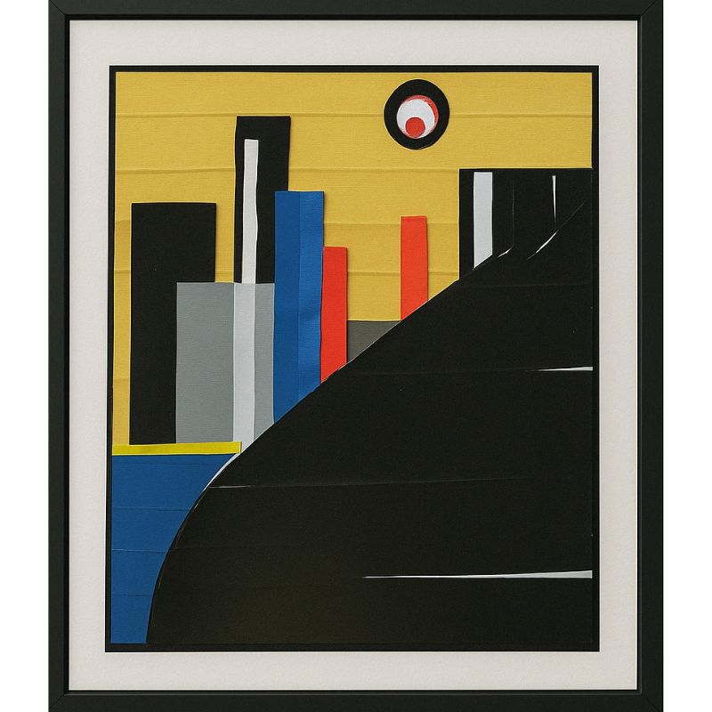 Un paesaggio astratto che, pur senza dettagli narrativi, evoca una storia: quella di una metropoli costruita con materiali semplici, ma capace di generare un’immagine potente e moderna.